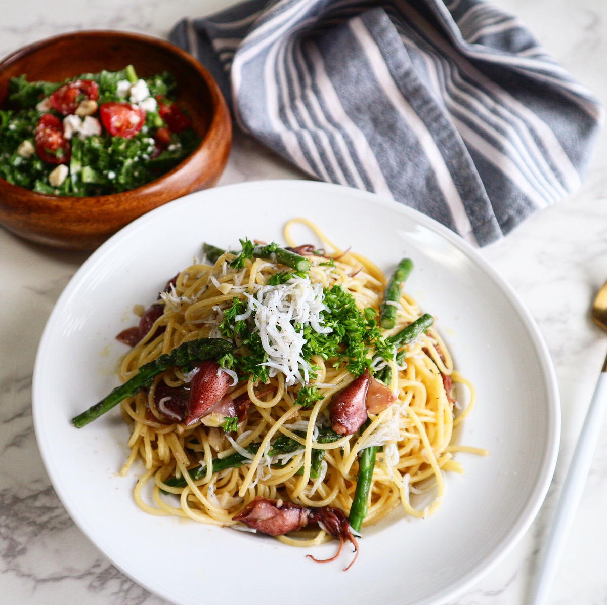 【調理時間:約20分】春のパスタ ホタルイカ、シラス、アスパラ