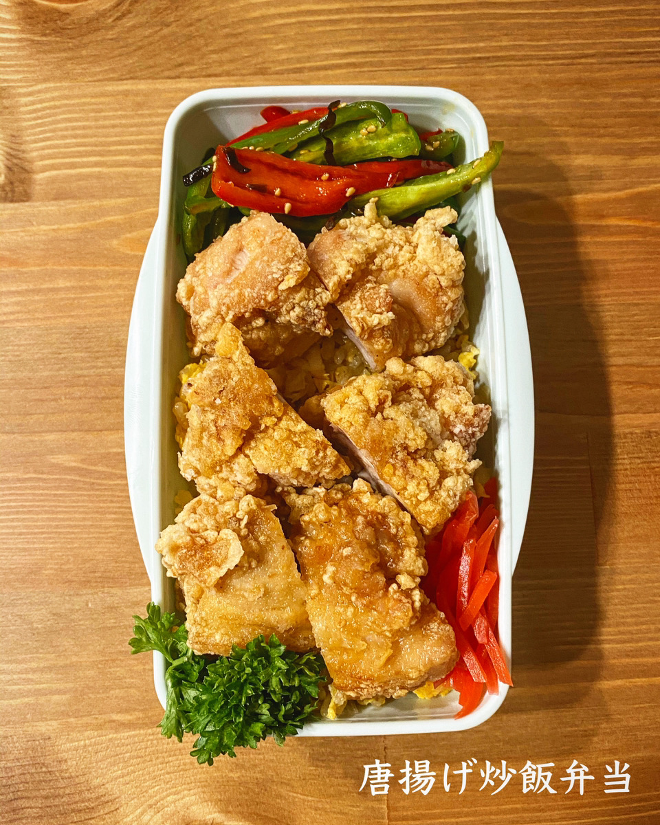焼き肉のたれで付け込む簡単からあげ炒飯弁当【30分弁当】