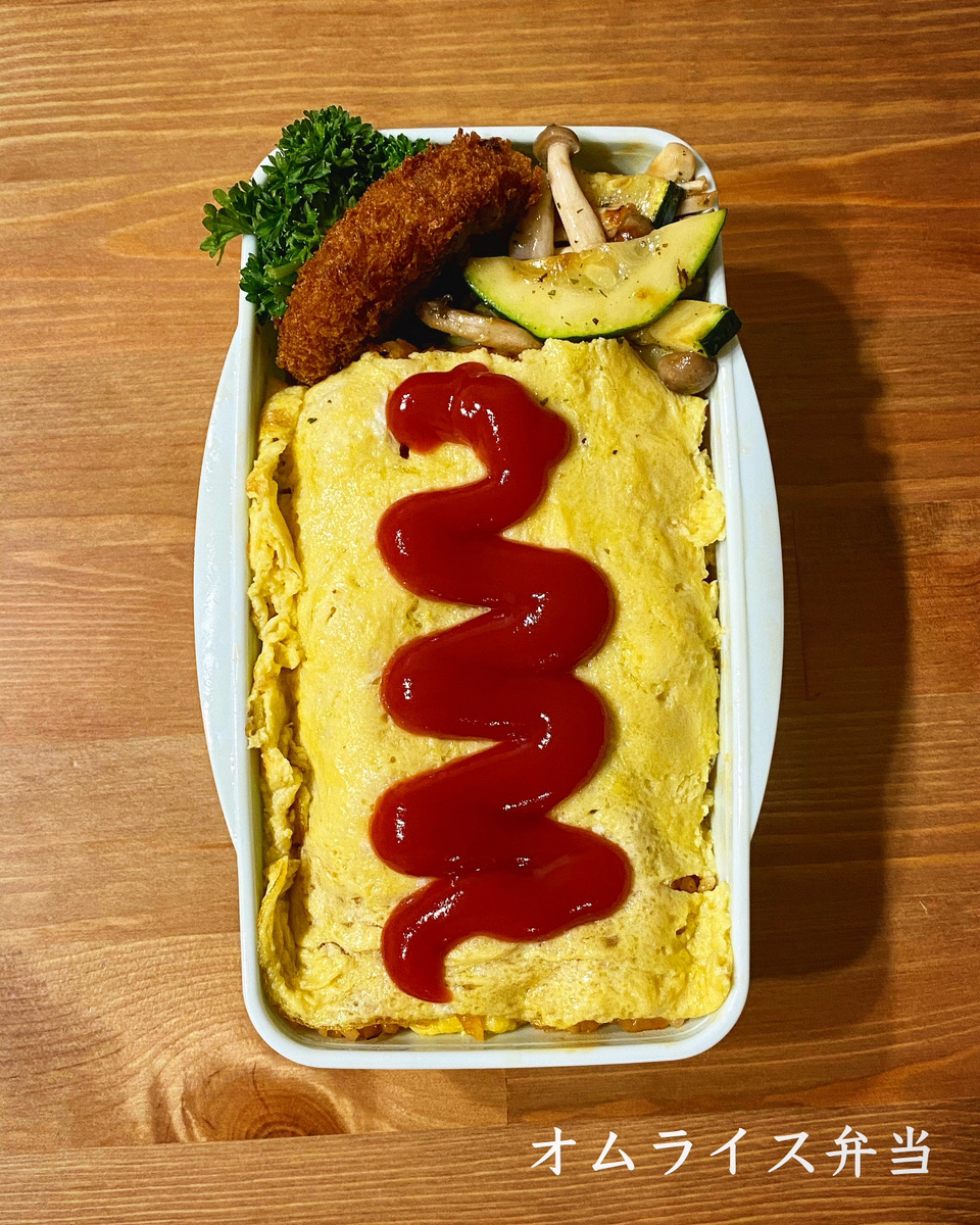チキンライス、卵、チキンライス、卵で重ねていく。